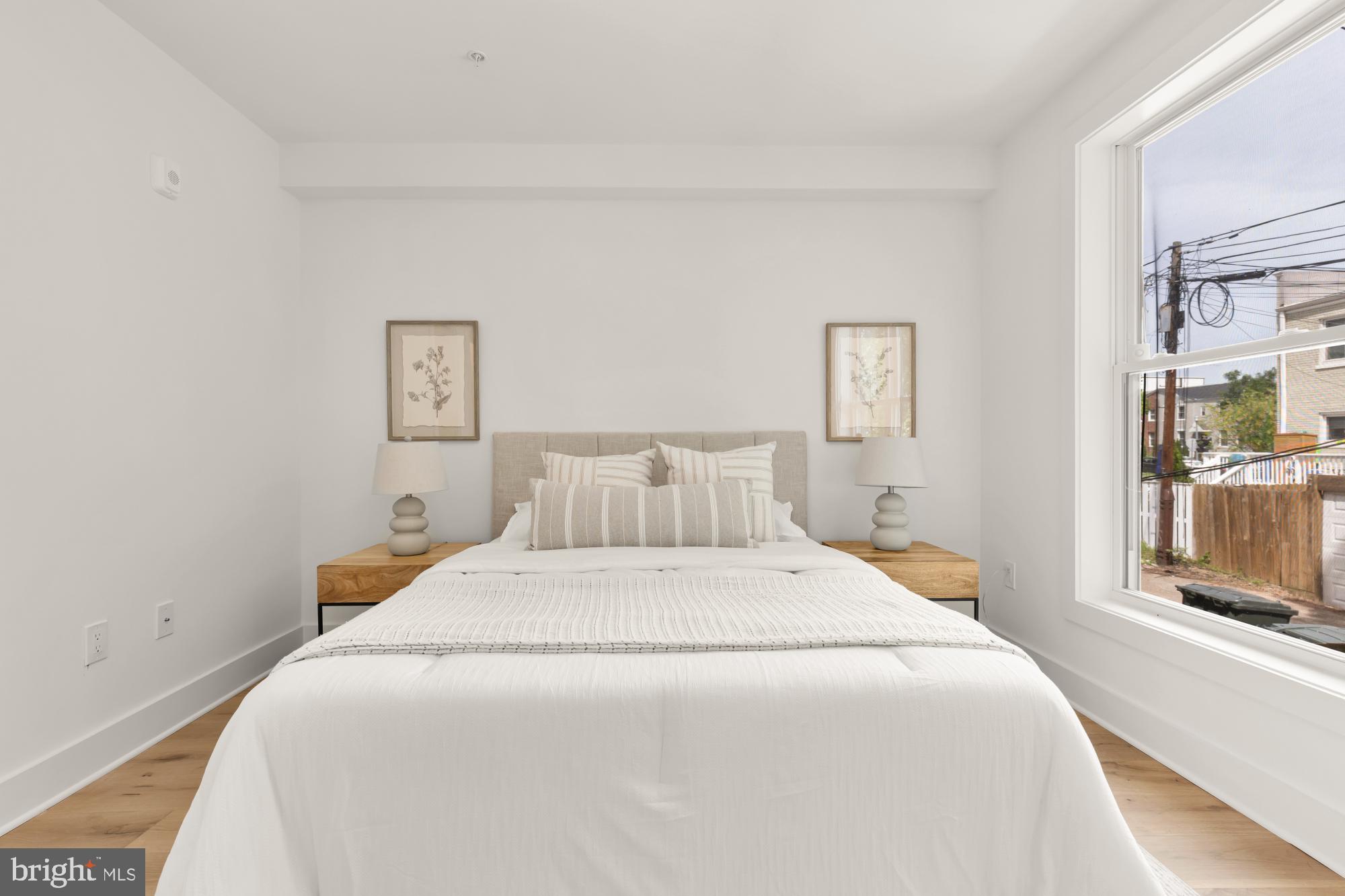 These open floor plans are complemented by wide-plank flooring, curated tile accents, and a chef-ready kitchen outfitted with quartz surfaces and stainless steel Samsung appliances. Oversized windows wash living spaces in an abundance of natural light. The first level of each unit boasts an expansive living space, an office/guest bedroom, and one full bathroom, while second levels maintain a generous owner's suite along with a third bedroom and full bathroom. Upper-level units feature private roof decks--perfect to entertain or unwind while enjoying monument views--while all units exit to the shared rear yard and secured parking.