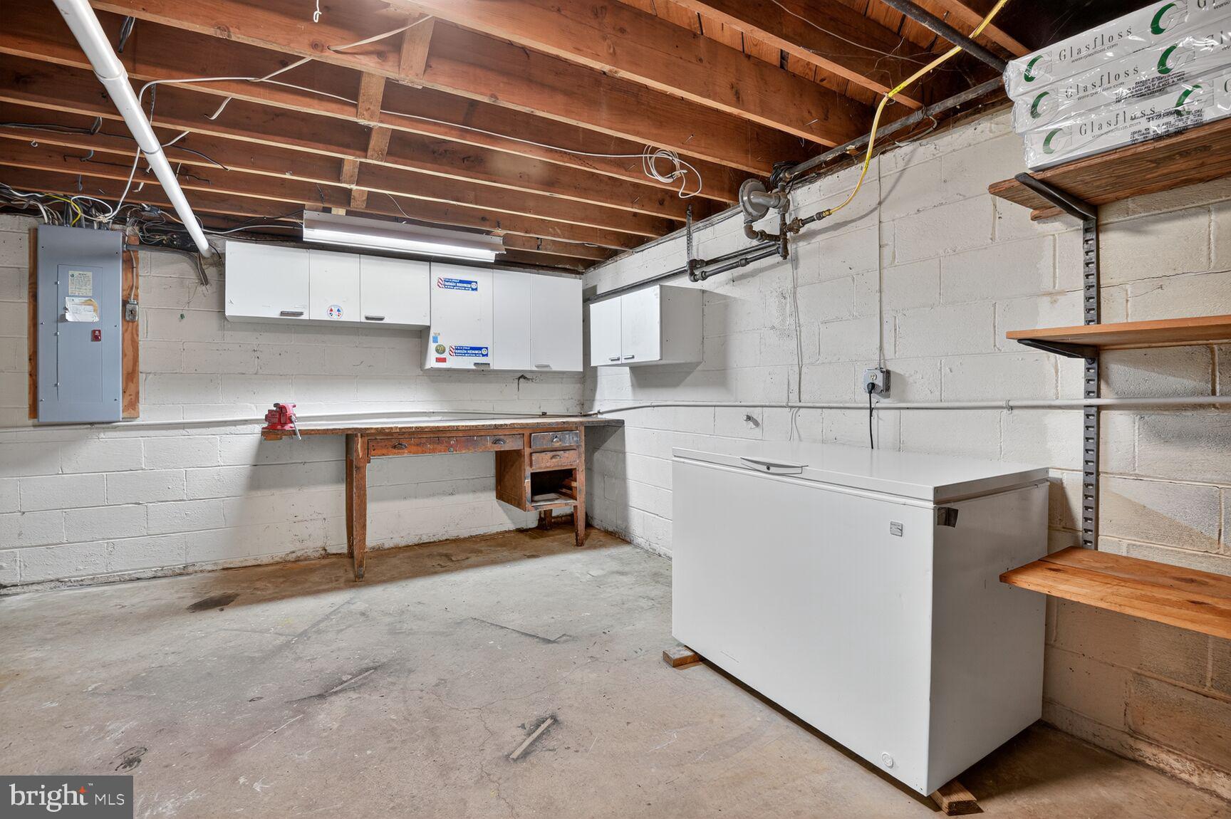 The lower level includes another full bath, a workshop, a large safe, and a semi-finished room ideal for a recreation room, den, or potential 4th bedroom.
