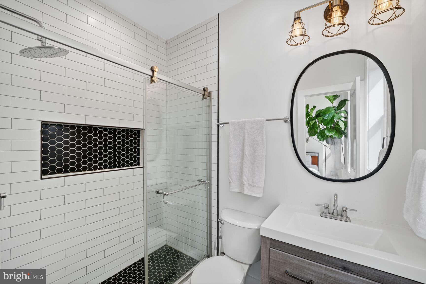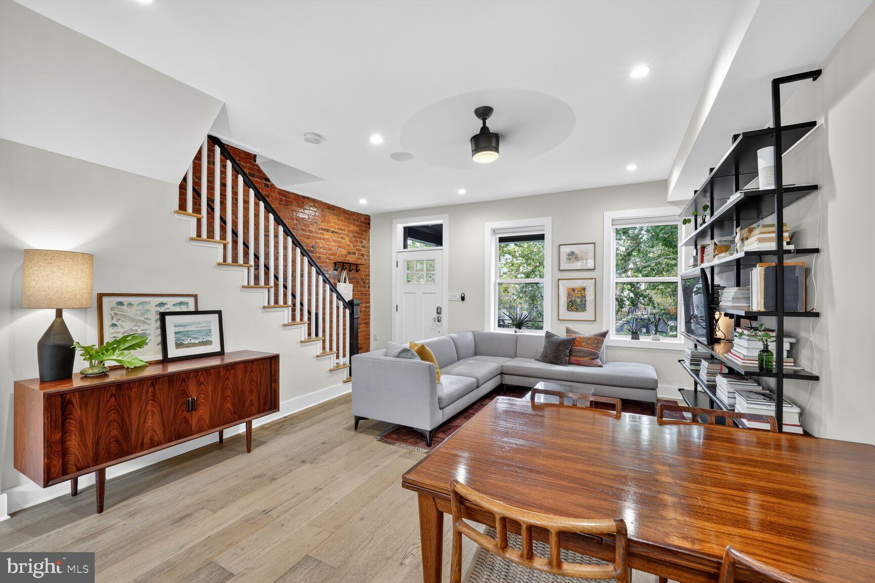Perfect City Living! This fully renovated home offers over 1,600 square feet of stylish living space in one of Washington's most popular neighborhoods. The open plan main level is flooded with natural light from south facing windows and features spacious living + dining areas and a fabulous kitchen. A cook's delight, the bright kitchen offers ample cabinet and counter space along with Bosch stainless steel appliances. The home's private deck is located just beyond the kitchen, providing easy access for al fresco dining and entertaining. A convenient powder room is also located on the main level. Upstairs offers a spacious primary bedroom with soaring ceilings and a sleek en suite bathroom, two additional bedrooms and a full bathroom. The fully finished lower level is comprised of an additional bedroom and full bath. This flexible space can serve a variety of purposes: work from home office, exercise area or TV/Family room. The private parking space (with an electric car charging station) is accessed from this level. The home's solar panels help keep utility costs low. Pets considered on a case-by-case basis. Application expectations: 2.5x rent in monthly income (all sources), minimum credit score of 650.