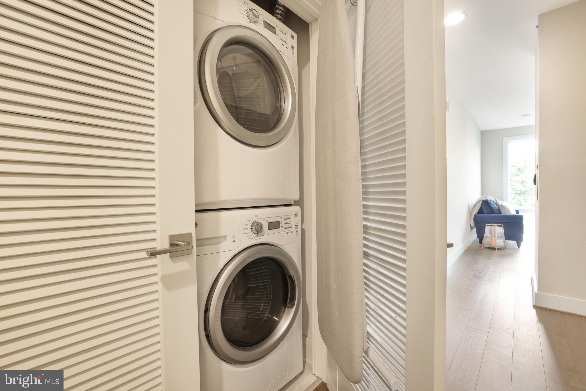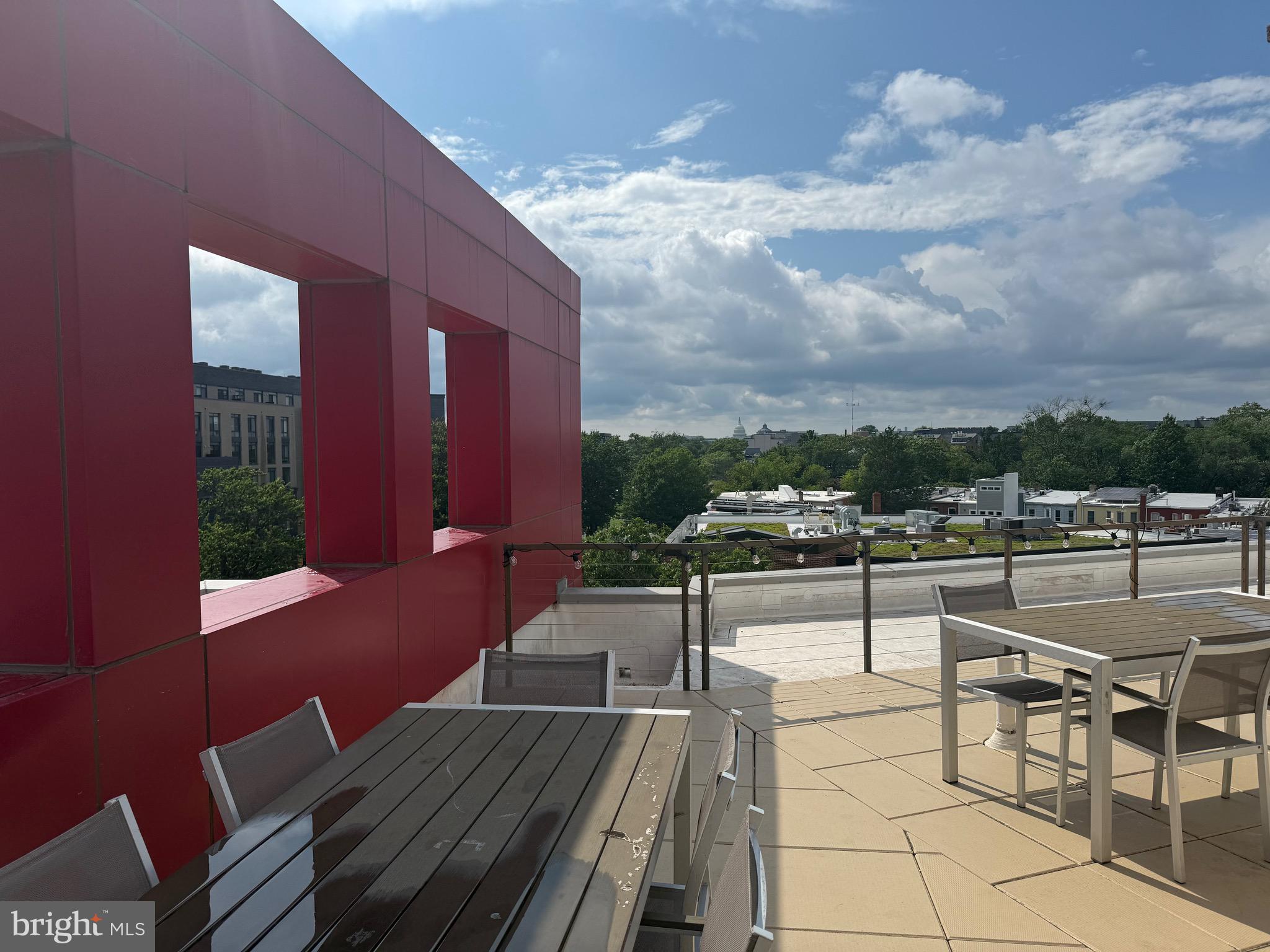 Enjoy abundant natural light from large windows and sliding glass doors, plus the ease of an in-unit washer and dryer. The rooftop terrace offers panoramic views of the Capitol, perfect for relaxing or entertaining.