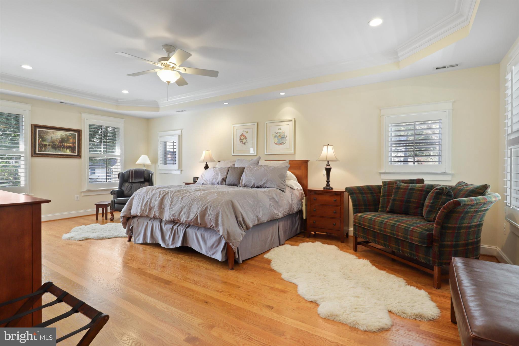 The family room is welcoming with a gas fireplace as the centerpiece and built-in bookshelves as an entertainment center, with a powder room near the entrance. The home has beautiful hardwood floors throughout the main and second levels. The second level contains the owner's suite as well as the laundry room close by, with high-capacity washer/dryer. The suite has elegant trey ceilings and plenty of natural light. The owner's bathroom is an excellent place to unwind and recharge. There's a coffee nook to jumpstart the day, attractive clawfoot bathtub, separate shower, double vanity, private toilet and large walk-in closet.