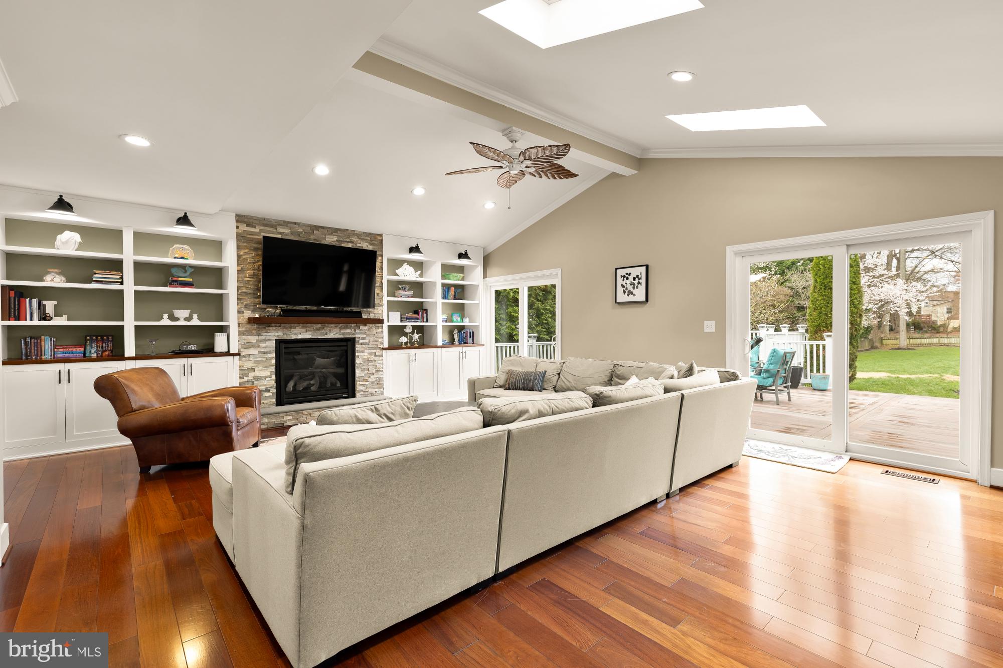 The main level is open and functional, with great natural light and features like tall ceilings, skylights, and recessed lighting that make the home feel bright and comfortable. The kitchen is well-equipped with stainless steel appliances and a large island--set up for both everyday use and hosting.