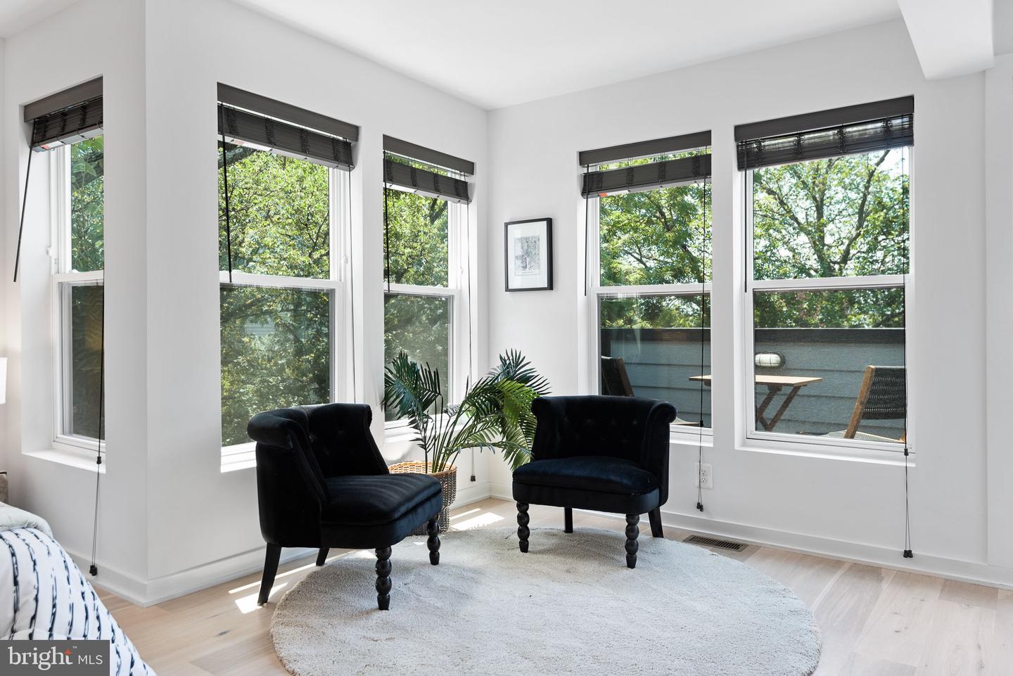 Stunning two-level, semi-detached Petworth Condo! Top level unit with 3 bedrooms/3 full baths boasts nearly 2000 square feet of sun-filled living space with gleaming wide-planked hardwood floors and contemporary design finishes throughout. The luxurious gourmet kitchen showcases soft close white shaker cabinetry, quartz countertops and top of the line Jenn-air appliances. gather around the large center island perfect for entertaining. Main level office or bedroom with a full bath is perfect for guests or working from home. Sleek modern handrails usher you upstairs to the primary bedroom with a sitting area, walk-in closet, private balcony and spa-like bath with custom tile walk-in shower, appointed with Kohler faucets and dual vanities. An additional bedroom with a private full bath with dual vanities and laundry completes the upper level.