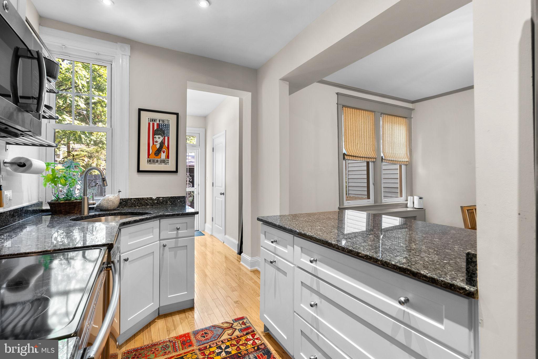 Discover 4427 Iowa Ave NW, a classic DC, federal style rowhome reimagined for modern living on a tree lined street in the heart of 16th Street Heights! From the stunning re-landscaped front yard with new walkway and bluestone porch to the stately federal facade, this home has the historic charm you love and the thoughtful updates you need for today's lifestyle. Inside, sunlight streams across the original hardwood and parquet floors, while the wood-burning fireplace adds warmth and character. The main level features a renovated kitchen with sleek white cabinetry, granite counters, stainless appliances, and a peninsula that connects the dining and living spaces. An updated powder and mudroom hallway provide access to the backyard. Upstairs are three spacious bedrooms, a full bath, and a flexible bonus room off the primary that's perfect for a sitting room or office. The welcoming, fully renovated lower level has an electric fireplace and full bath and with front and rear doors making this level ideal for guests, or a home office. Recent upgrades include a brand-new AC system (2024), renovated lower level with new windows and full bath (2024), complete front yard exterior refresh (2025), and a renovated garage with new garage door, doors, windows, gutters, and roof sealing, (2024). The outdoor spaces are equally inviting--enjoy coffee on the front porch, and dinner parties on the brick-paved patio, and you will love exploring the vibrant neighborhood just beyond your front door. Timber Pizza, Cinder BBQ, Yes! Organic Market, and Metro are all within easy reach, with Rock Creek Park and the National Zoo just minutes away. This home offers timeless architecture, and meticulous updates for a move-in ready home all in an unbeatable location for the best of DC living, welcome home!