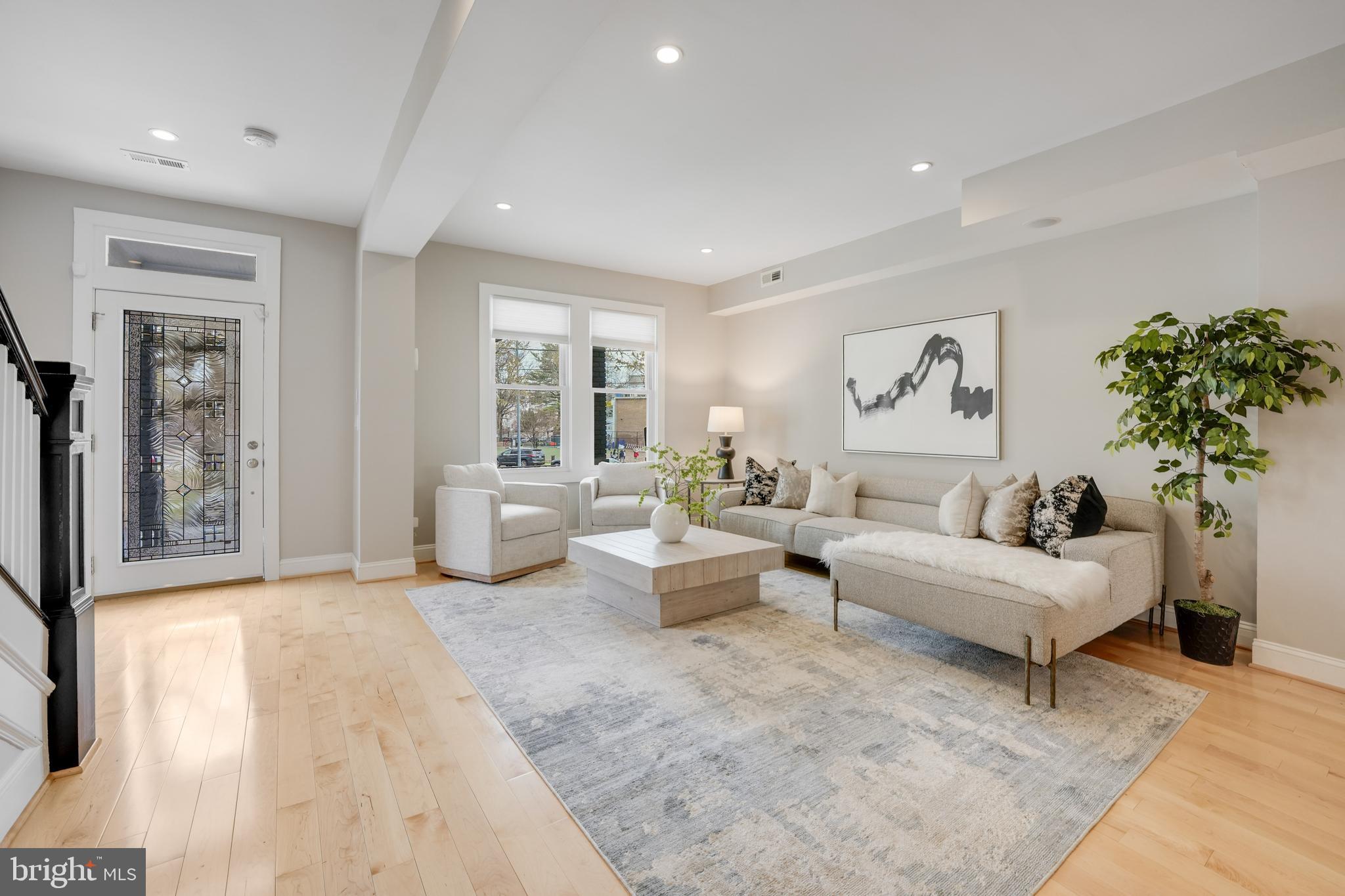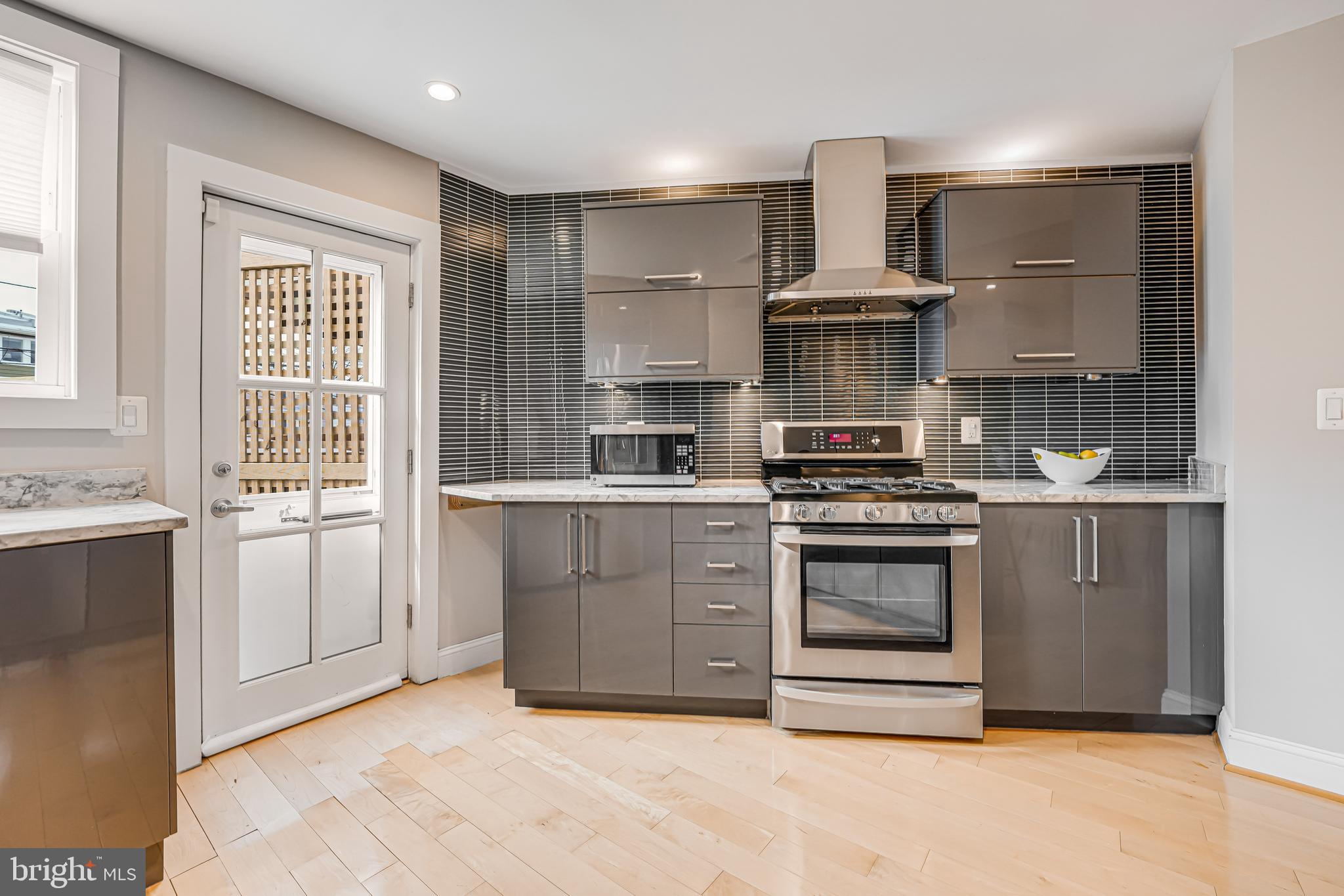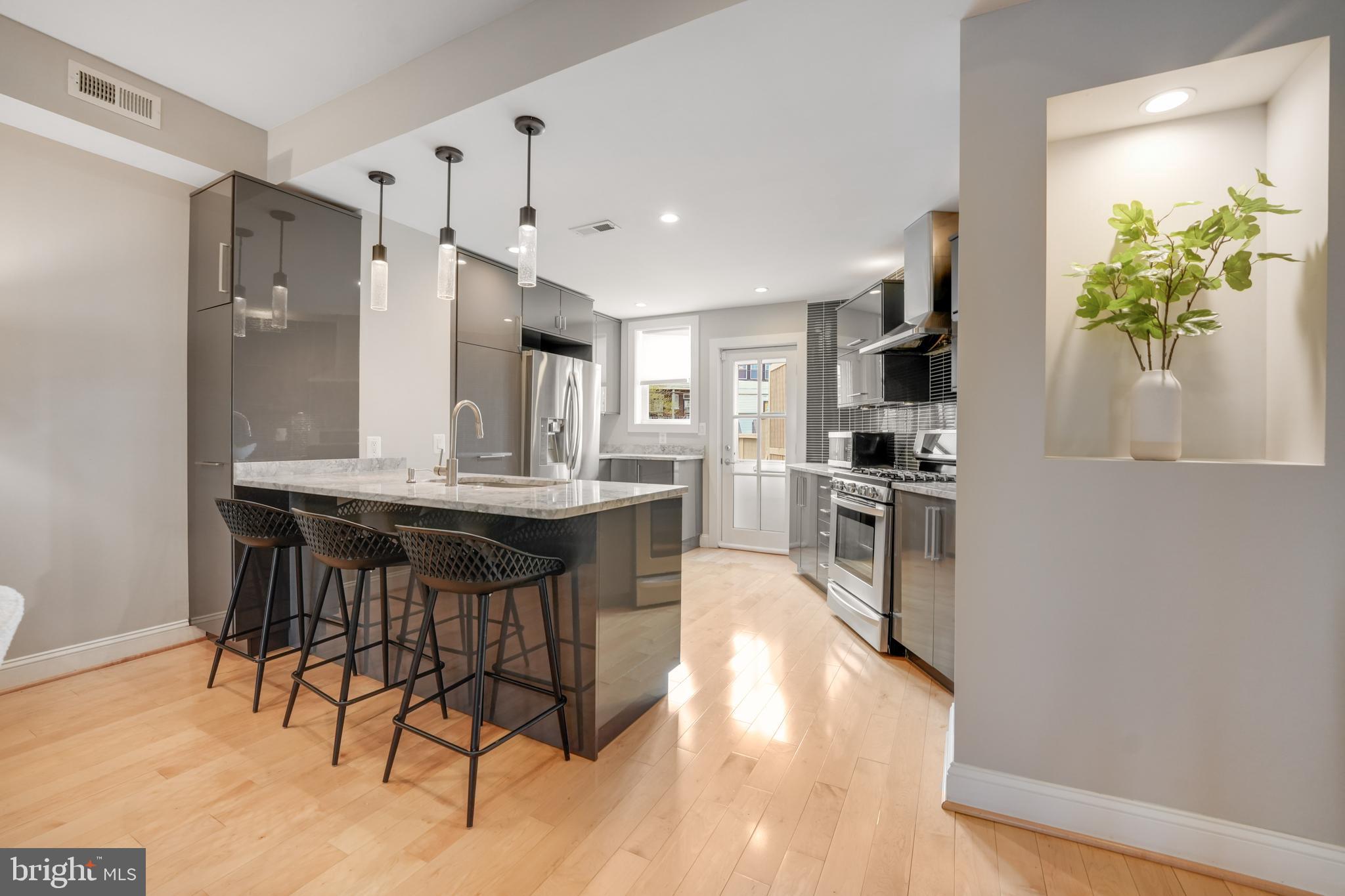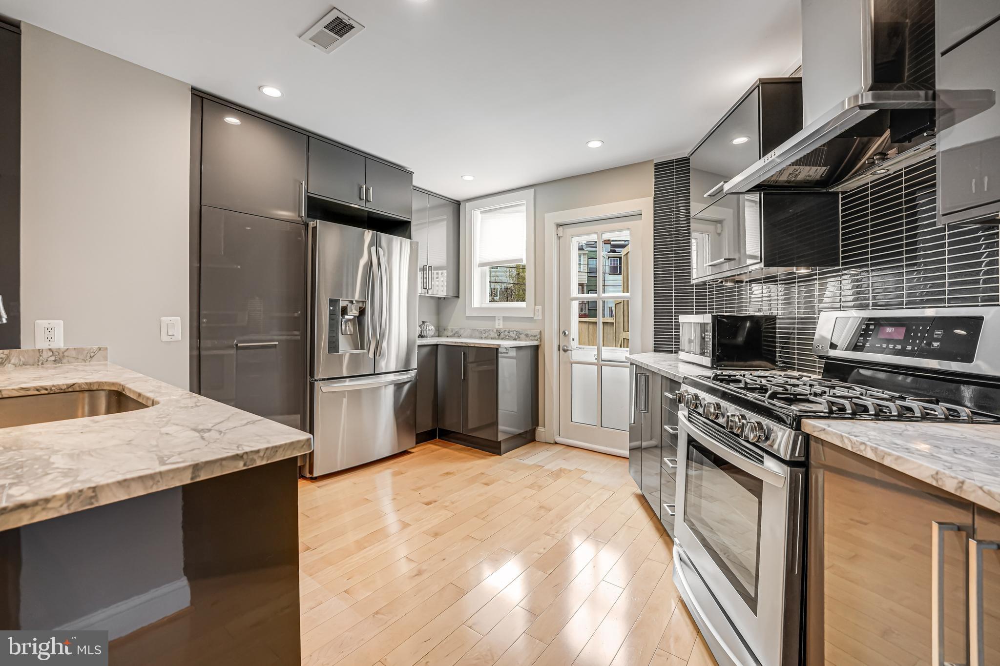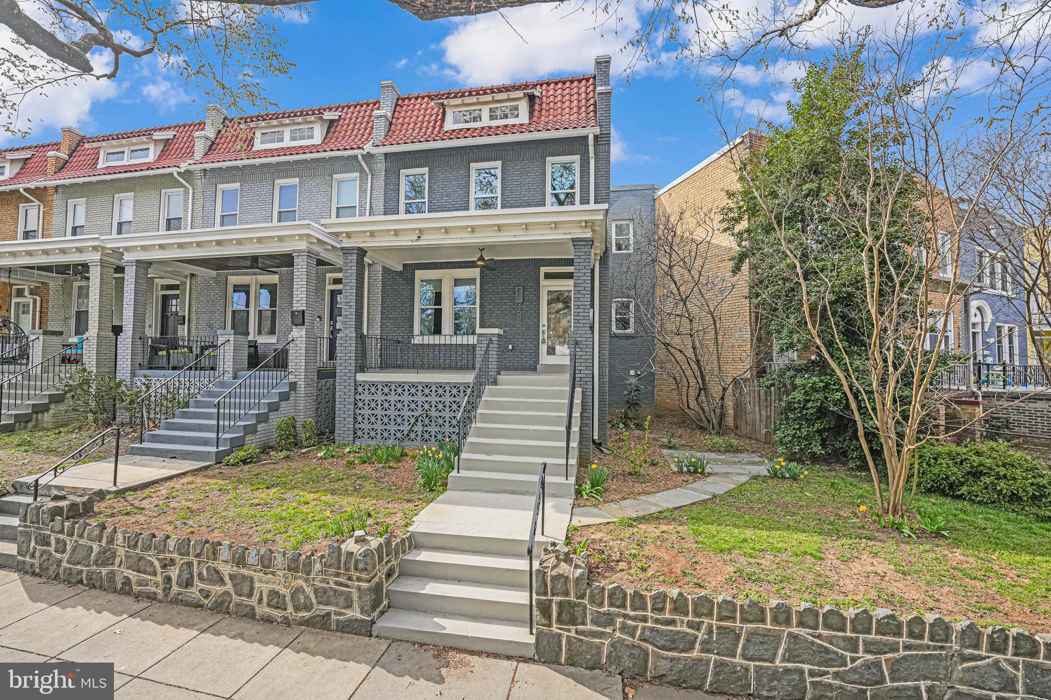 Welcome to 4606 Kansas Ave. NW, a renovated (2014) row house overlooking picturesque Sherman Circle. This home offers an expansive front and side yard, providing ample space for gardening and outdoor enjoyment. A welcoming front porch offers the perfect spot to relax and take in views of the circle. The fully fenced private rear patio adds to the home's charm, featuring a flagstone patio and off-street parking. Step inside to discover a bright and spacious main level, designed for both comfort and functionality. The sunlit living room creates an inviting atmosphere, while the generously sized dining area is perfect for entertaining. The open-concept chef's kitchen boasts marble countertops, stainless steel appliances, and abundant storage. A conveniently located powder room, additional storage space, and a second laundry hook-up add extra convenience. On the second level, the primary suite is a true retreat, filled with natural light and featuring an en-suite bathroom complete with a dual vanity and walk-in shower. Two additional bedrooms provide plenty of space, and a shared hall bathroom ensures comfort for family and guests alike. The lower level expands the home's versatility with a comfortable family room featuring brand-new carpeting. A kitchenette with extra storage adds convenience, while the fourth bedroom is perfect for guests or a home office. A third full bathroom and a dedicated laundry area complete this level. Located in the sought-after Petworth neighborhood, this home is zoned for John Lewis Elementary, a WELL-certified, Net Zero-designed, and LEED-certified school. Enjoy direct access to Sherman Circle's green space for outdoor recreation, while being just three blocks from the vibrant shops and restaurants on Upshur Street and Georgia Avenue. Dining and shopping options include Timber Pizza, San Matteo, Cinder BBQ, Honeymoon Chicken, Buna Coffeehouse, Lulabelle's Sweet Shop, Loyalty Bookstore, Ace Hardware, Petworth Community Market, Petworth Library, and Yes! Organic Market. For commuters, the home is within walking distance of multiple bus lines, including the 70, 79, 62, and 63 routes, as well as the Georgia Ave-Petworth Metro Station on the Green Line. Additional neighborhood amenities include Petworth Fitness, Yoga District, daycare centers, playgrounds, and a nearby Safeway for grocery needs.