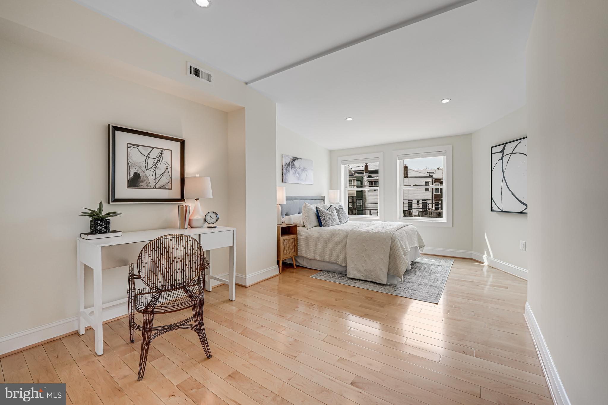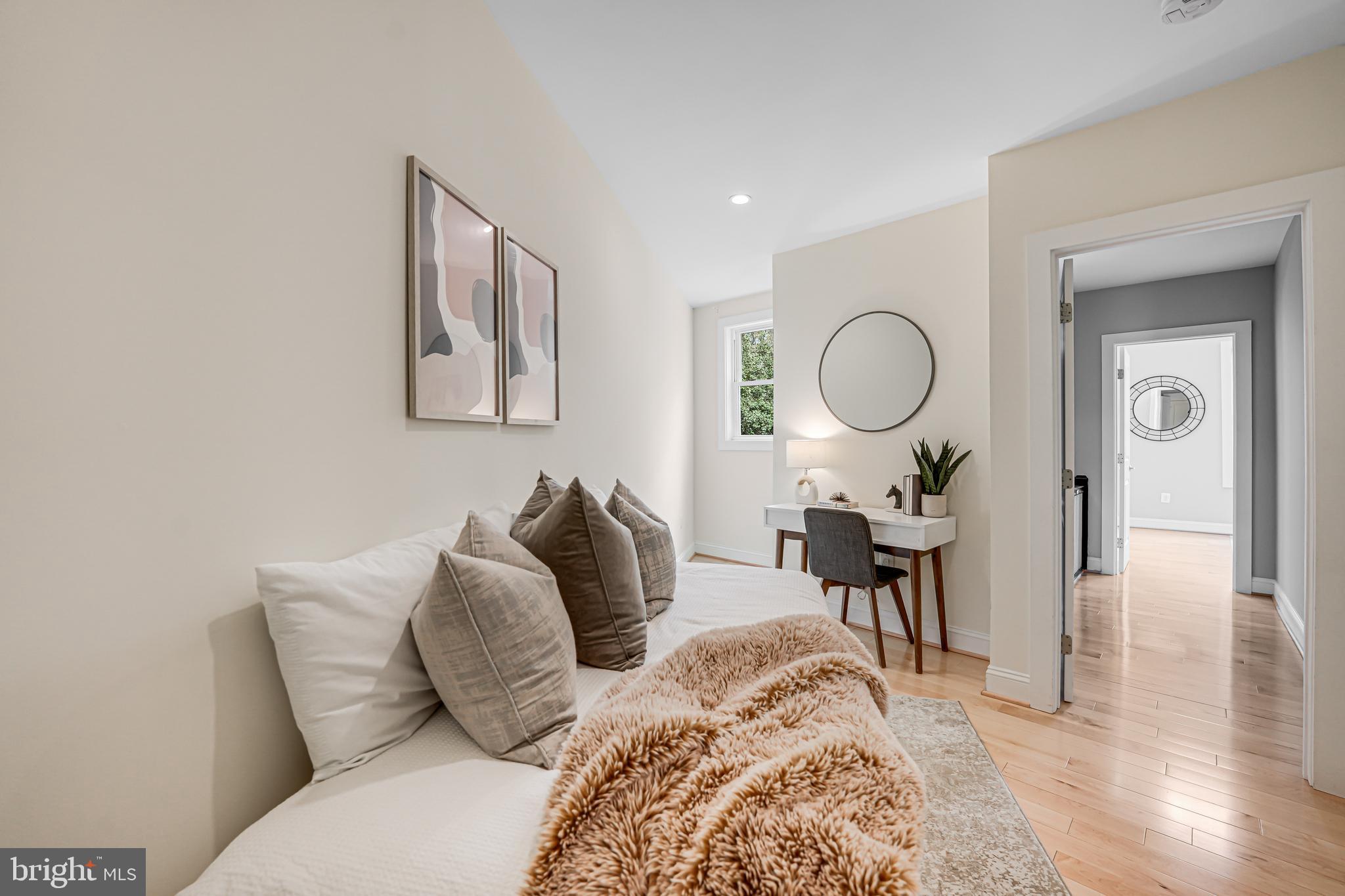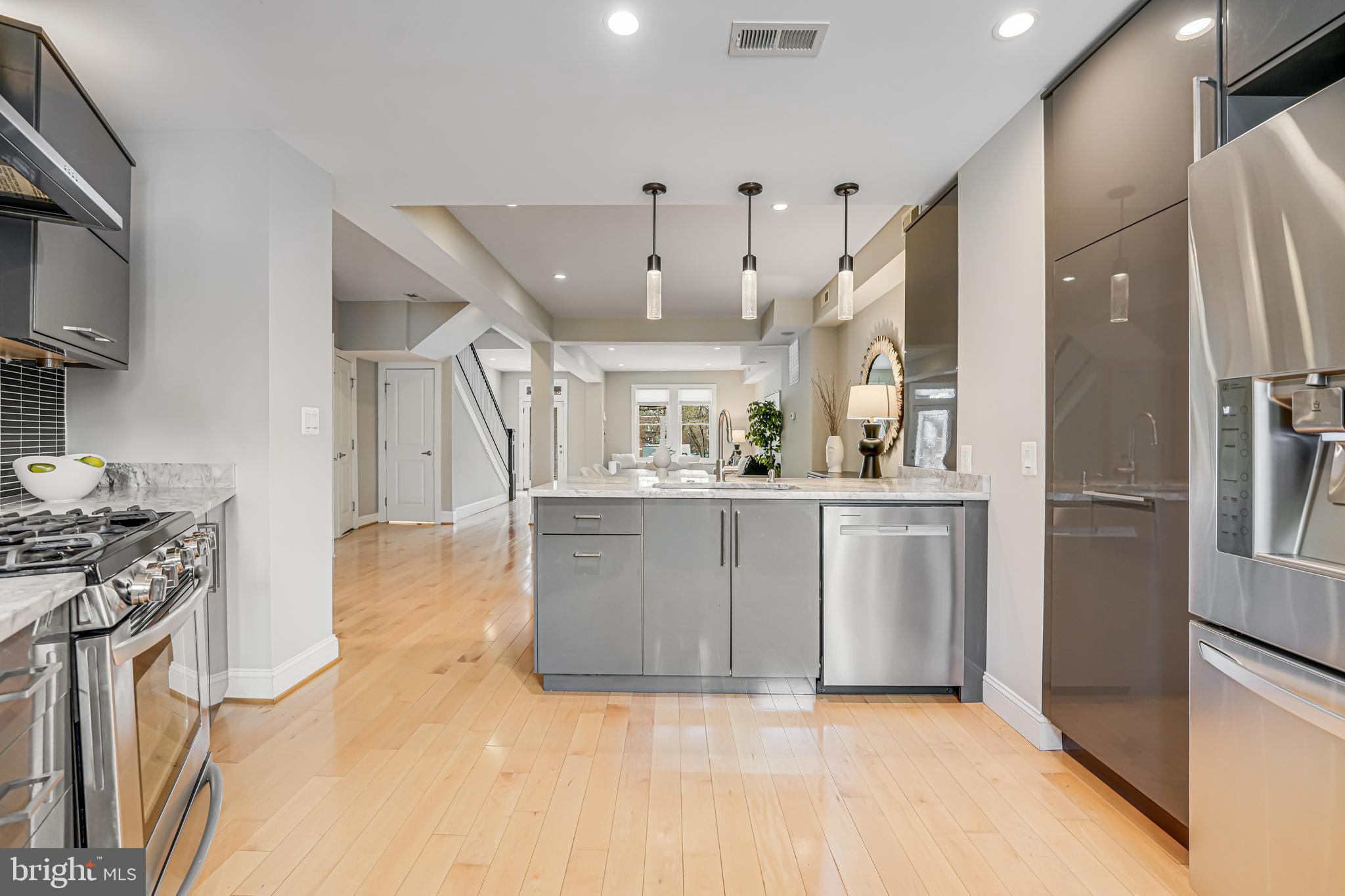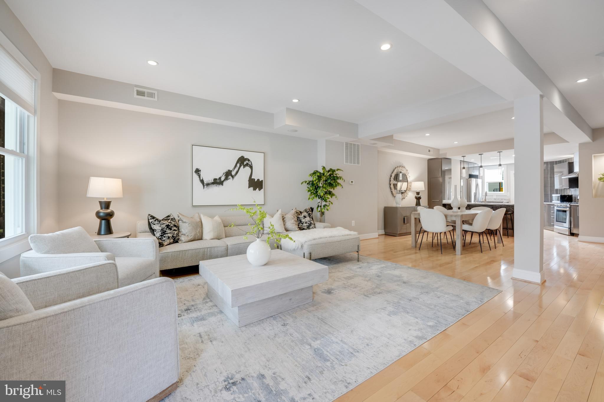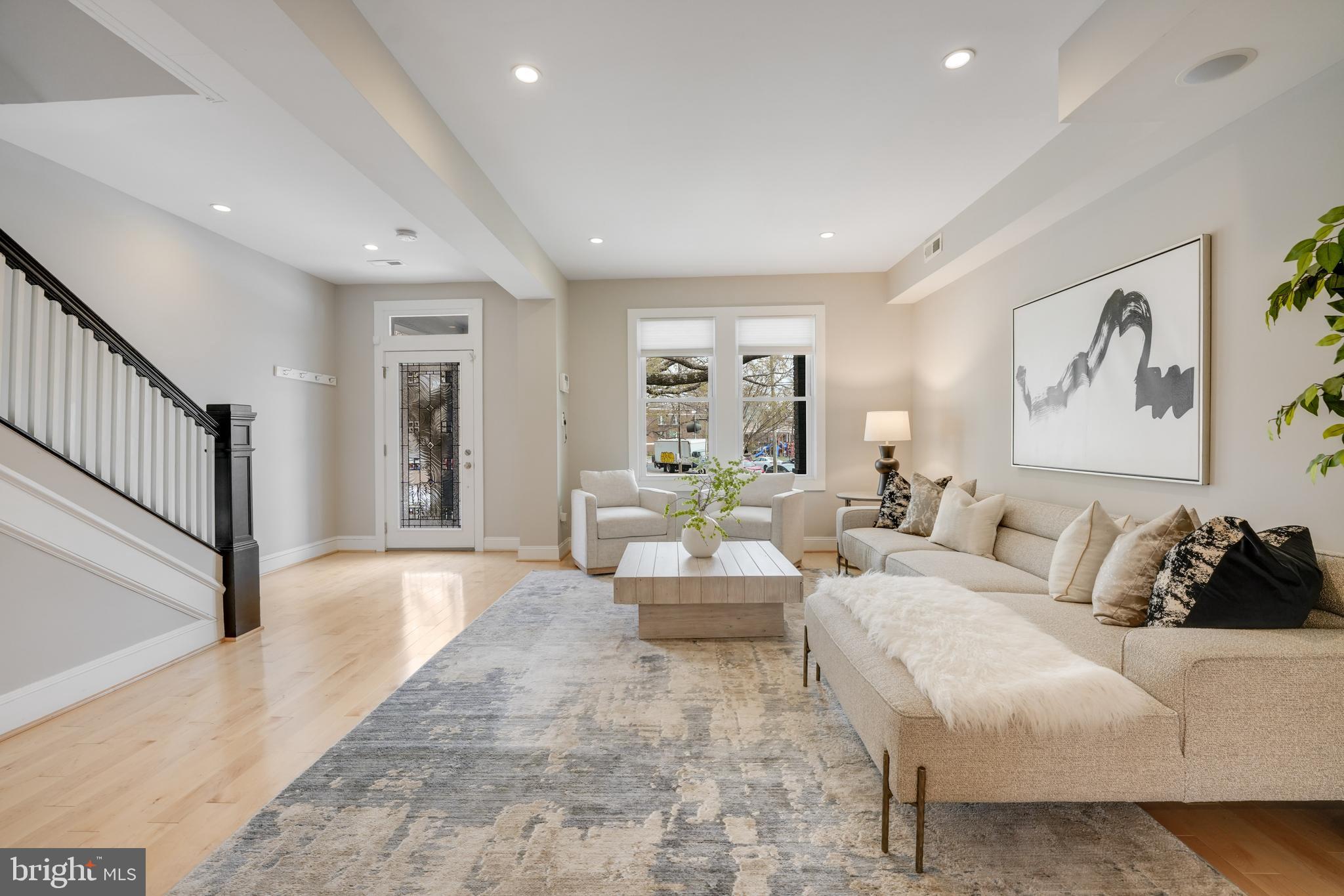 Welcome to 4606 Kansas Ave. NW, a renovated (2014) row house overlooking picturesque Sherman Circle. This home offers an expansive front and side yard, providing ample space for gardening and outdoor enjoyment. A welcoming front porch offers the perfect spot to relax and take in views of the circle. The fully fenced private rear patio adds to the home's charm, featuring a flagstone patio and off-street parking. Step inside to discover a bright and spacious main level, designed for both comfort and functionality. The sunlit living room creates an inviting atmosphere, while the generously sized dining area is perfect for entertaining. The open-concept chef's kitchen boasts marble countertops, stainless steel appliances, and abundant storage. A conveniently located powder room, additional storage space, and a second laundry hook-up add extra convenience. On the second level, the primary suite is a true retreat, filled with natural light and featuring an en-suite bathroom complete with a dual vanity and walk-in shower. Two additional bedrooms provide plenty of space, and a shared hall bathroom ensures comfort for family and guests alike. The lower level expands the home's versatility with a comfortable family room featuring brand-new carpeting. A kitchenette with extra storage adds convenience, while the fourth bedroom is perfect for guests or a home office. A third full bathroom and a dedicated laundry area complete this level. Located in the sought-after Petworth neighborhood, this home is zoned for John Lewis Elementary, a WELL-certified, Net Zero-designed, and LEED-certified school. Enjoy direct access to Sherman Circle's green space for outdoor recreation, while being just three blocks from the vibrant shops and restaurants on Upshur Street and Georgia Avenue. Dining and shopping options include Timber Pizza, San Matteo, Cinder BBQ, Honeymoon Chicken, Buna Coffeehouse, Lulabelle's Sweet Shop, Loyalty Bookstore, Ace Hardware, Petworth Community Market, Petworth Library, and Yes! Organic Market. For commuters, the home is within walking distance of multiple bus lines, including the 70, 79, 62, and 63 routes, as well as the Georgia Ave-Petworth Metro Station on the Green Line. Additional neighborhood amenities include Petworth Fitness, Yoga District, daycare centers, playgrounds, and a nearby Safeway for grocery needs.
