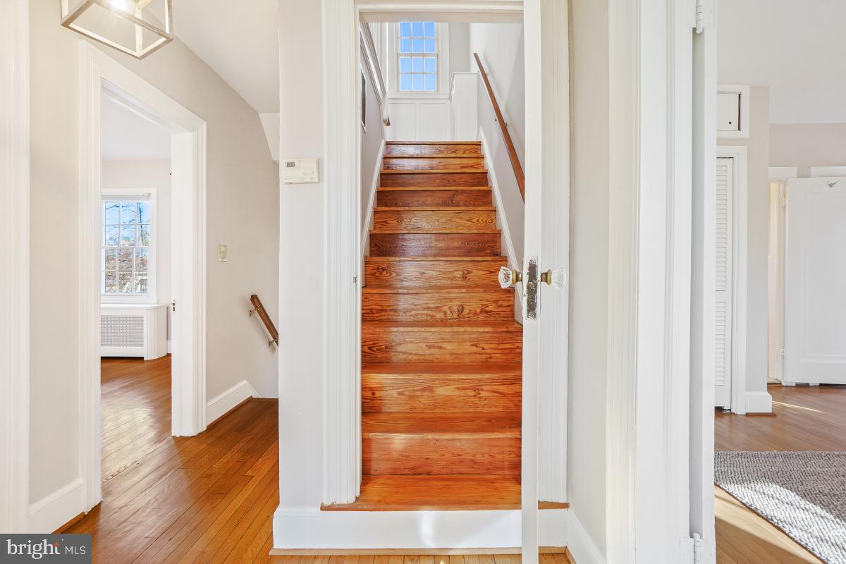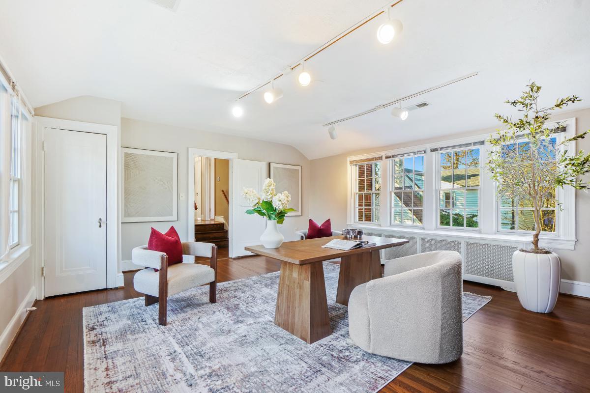 This expanded Colonial Revival home in Chevy Chase Gardens blends classic architecture with a location that offers the best of an established neighborhood and easy access to the conveniences of Washington, D.C. A welcoming entry hall with a coat closet sets the tone and opens to the living room centered around a cozy fireplace. Off this room is an office/den, with French doors to a perfect brick patio. Chair railing accents the dining room which leads into the kitchen with white cabinetry, and a big pantry. The adjacent recreation room allows you to prepare meals while staying connected to everyday activity. This room has a door to the patio and backyard. There is also a bathroom and a shower closet nearby. Upstairs, you'll find yourself in a very spacious family room filled with natural light. It has a closet and provides a comfortable gathering place for everyday living and special moments alike. The primary bedroom features two closets, a private full bath, and a fantastic rooftop balcony. Down the hall is another full bath, a linen closet, and two additional bedrooms. Dormer windows in the two bedrooms and half bath on the third floor add lots of character and natural light to this top level of the home. A full bath, workshop area, and abundant storage with flexibility for future possibilities are in the basement. Most of the hardwood floors throughout the home have just been refinished, and the entire home is freshly painted (except for one bedroom), truly move-in ready and well cared for. The yard is nicely landscaped, and there's a storage shed attached to the house that will hold all your yard equipment. Enjoy a walkable lifestyle with Metro, restaurants, and shops in Friendship Heights and Bethesda, just about 15 minutes away, along with nearby Somerset Elementary, Norwood Park, the Bethesda Outdoor Pool, and the Capital Crescent Trail. Lovingly maintained by the same owner for decades, this home showcases enduring charm, comfort, and the opportunity to make it your own over time. Square footage is based on estimated floor plans provided by the photographer. All measurements are approximate and should be independently verified.