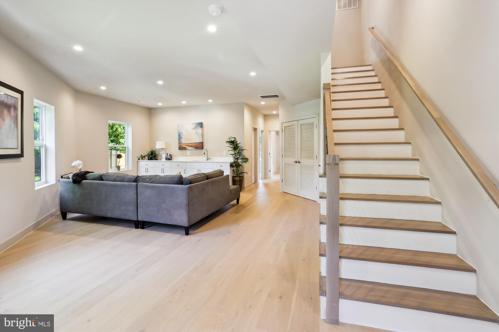 Welcome to 4900 D St. SE, A brand new end unit home with a contemporary and open floor plan on three levels has luxurious features...custom painted, high ceilings, recessed lights, walk-in closets, a fabulous European style kitchen, wide plank wood floors, designer bathrooms and more. An open and versatile floor plan offers you options to use the space per your needs. Entry Level has a large living/family room with a wet bar and two bedrooms. Large hall closet, laundry closet plus a mechanical room. A back door that opens onto a fully enclosed back yard. Main Level has a large open kitchen with space for a formal dining area and a sitting room, bedroom with en-suite bathroom that also opens from the hallway. Upper Level has a fabulous master bedroom with a luxurious bathroom and a large walk-in closet, Two additional bedrooms plus a full bathroom.