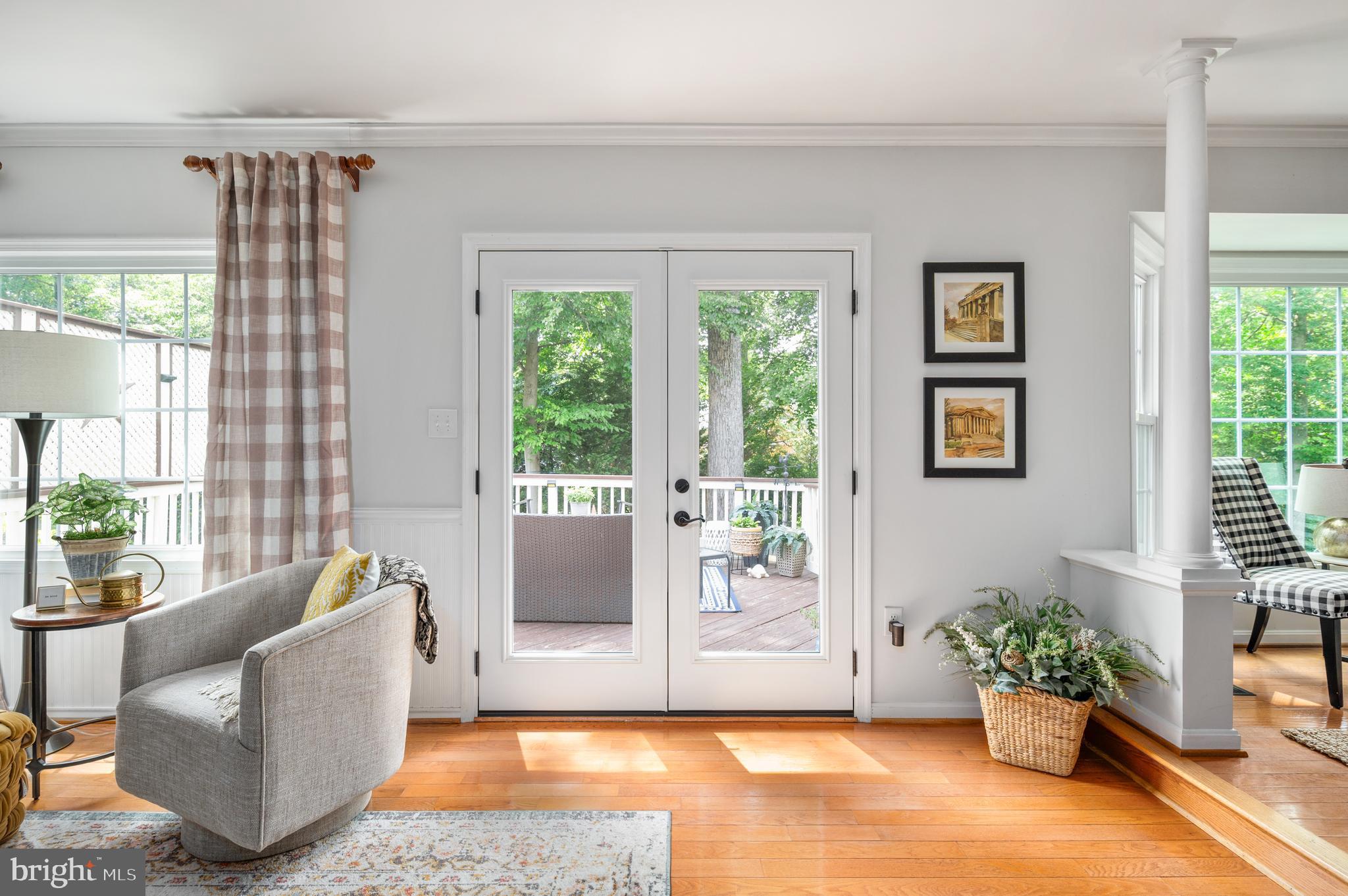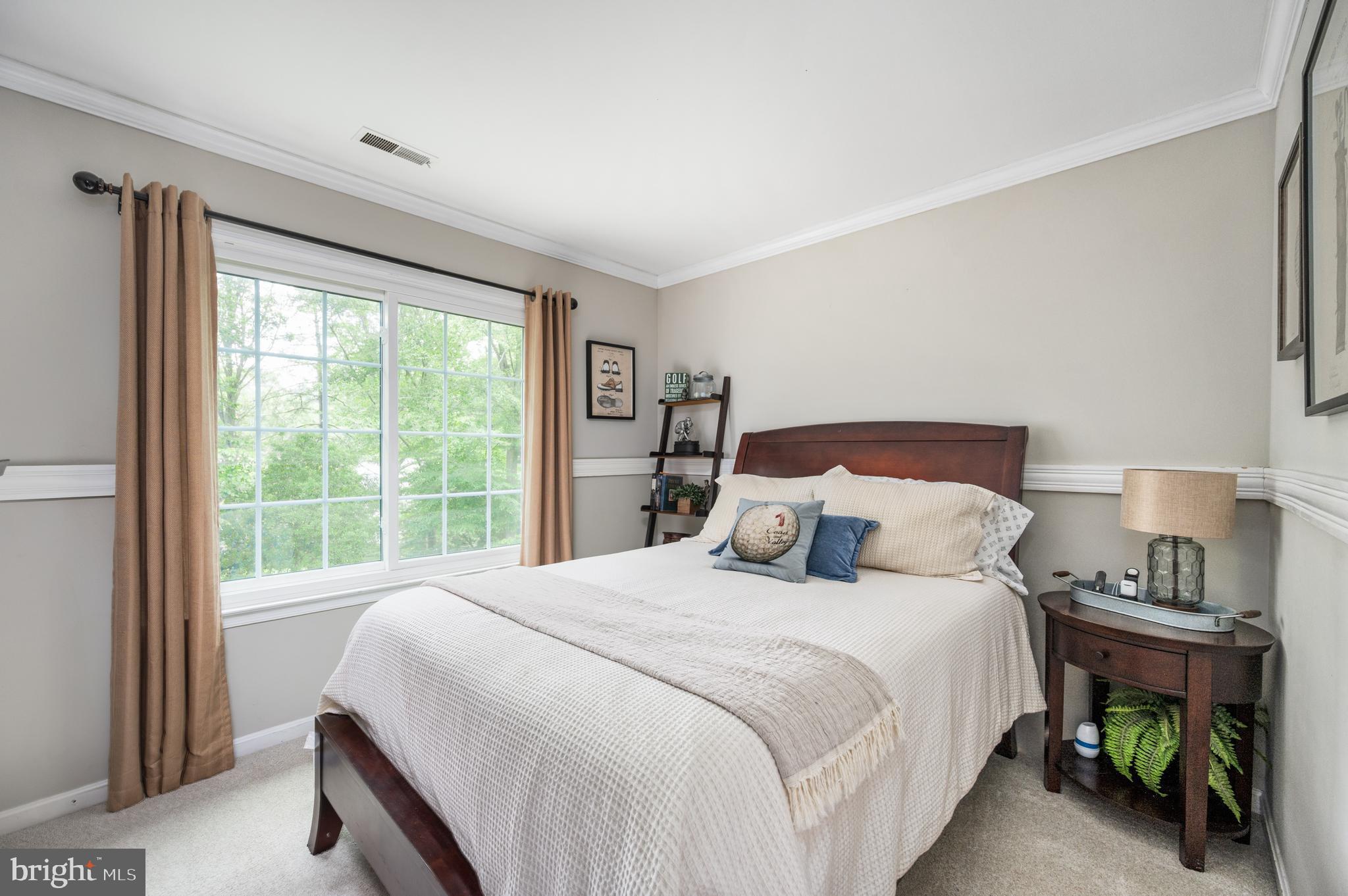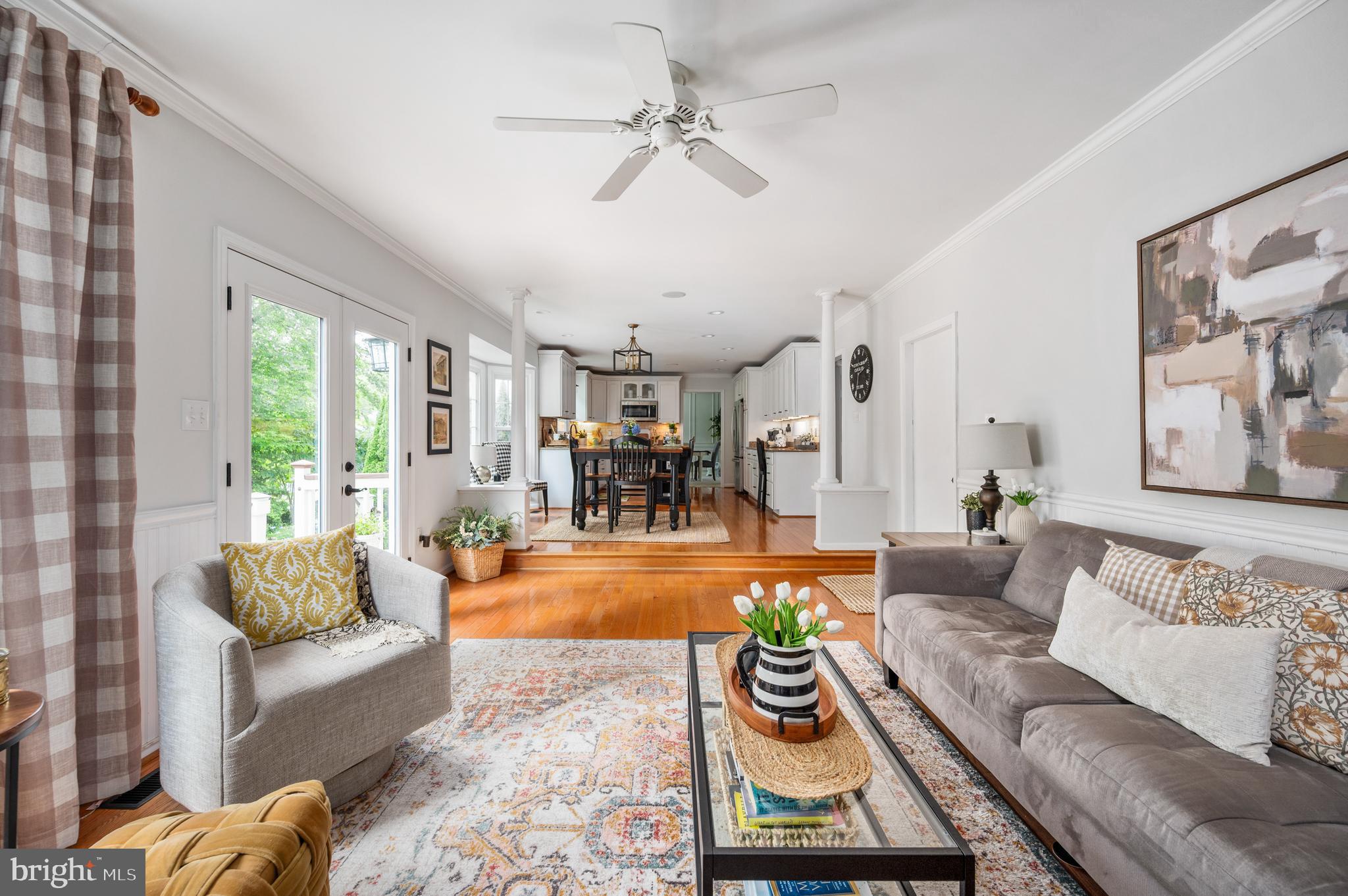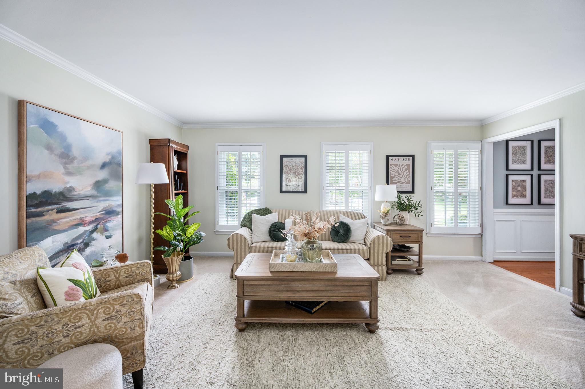 Detailed chair molding and shadow boxing trim throughout the main level and in the spacious primary suite add warmth and architectural charm to the home's interior.