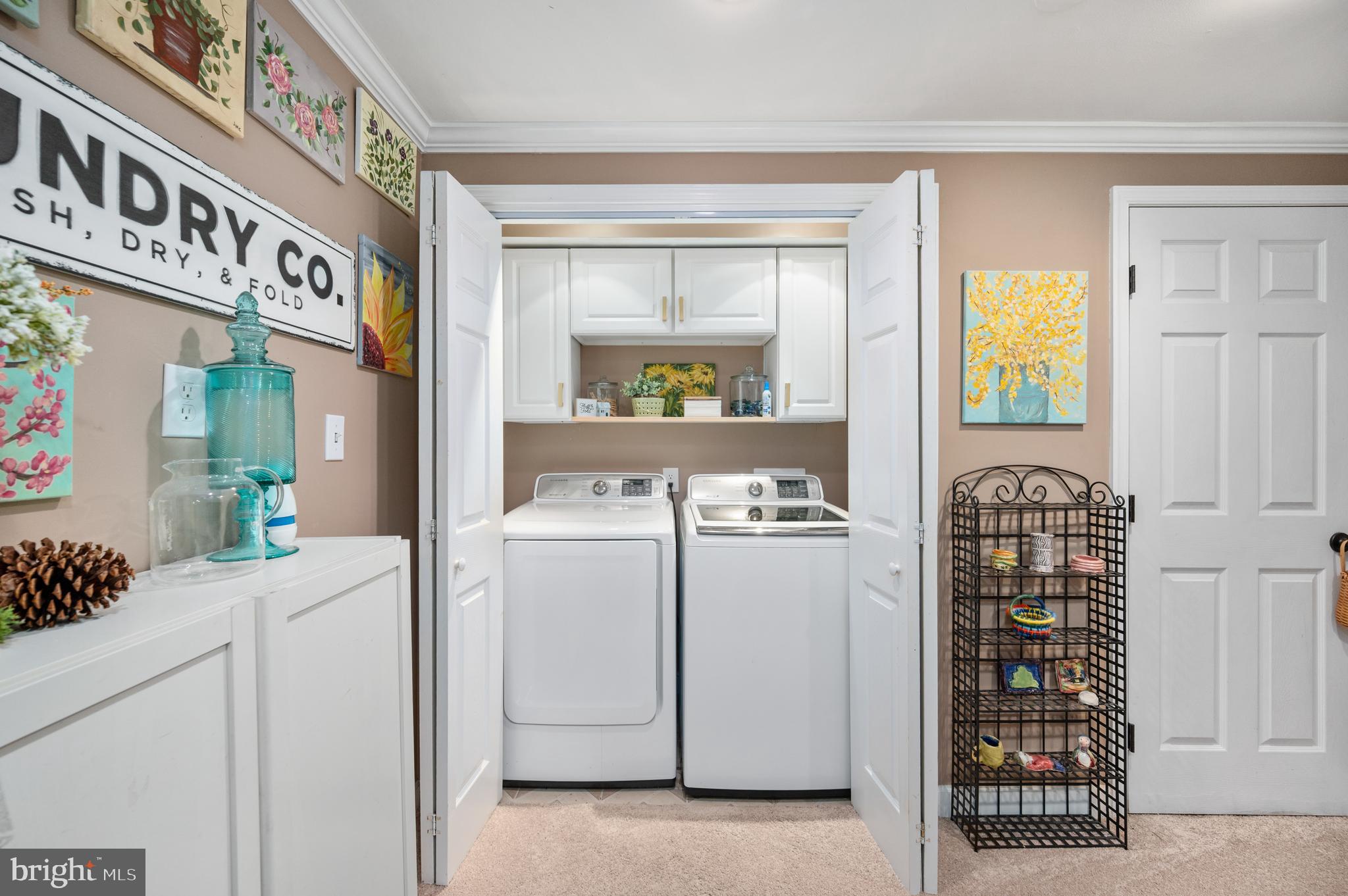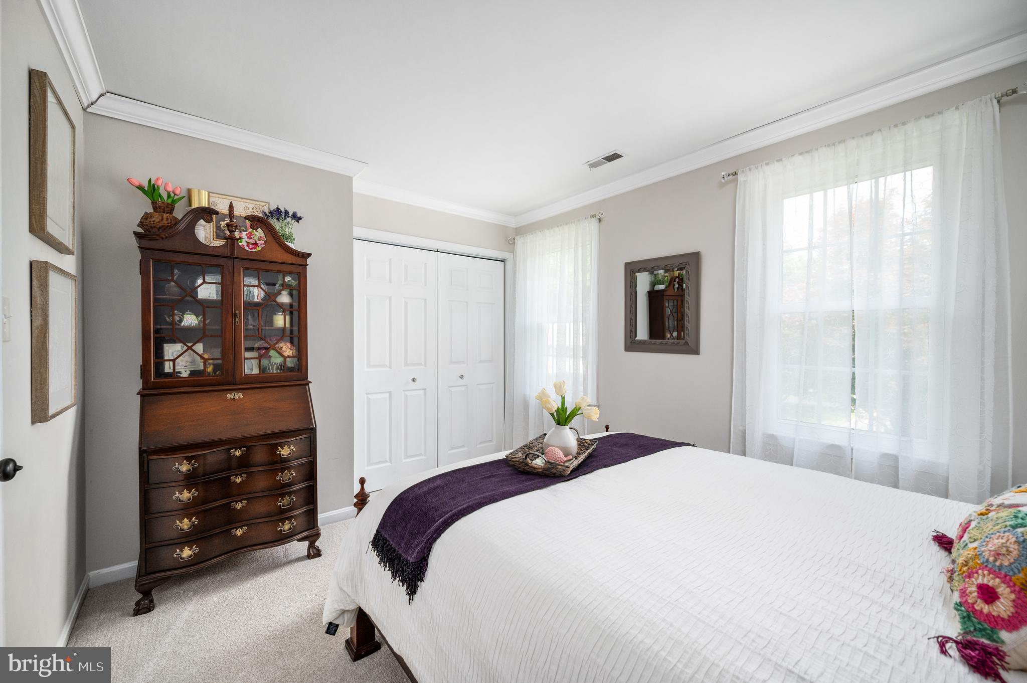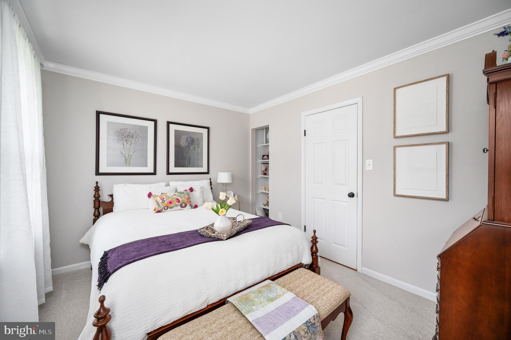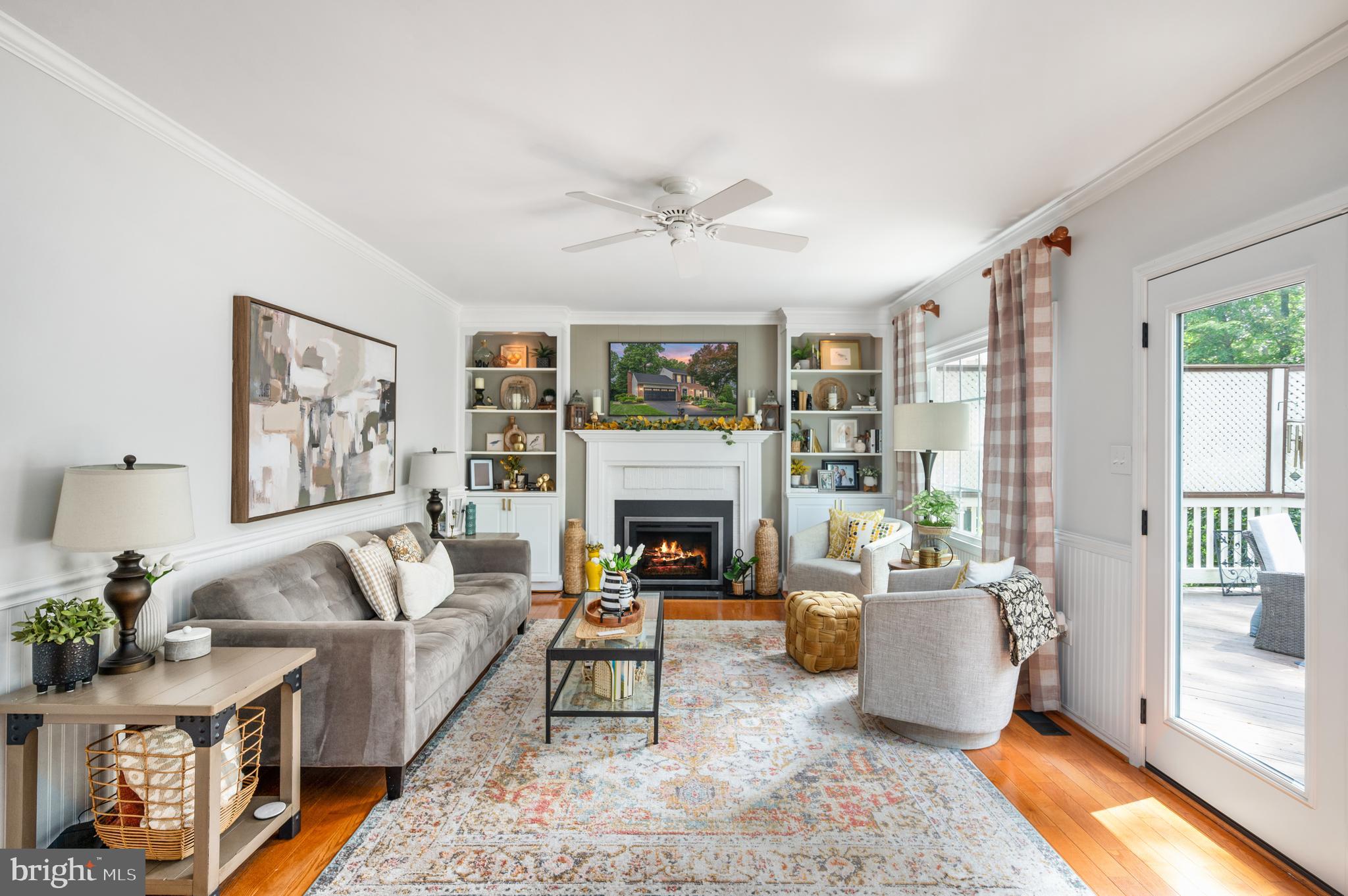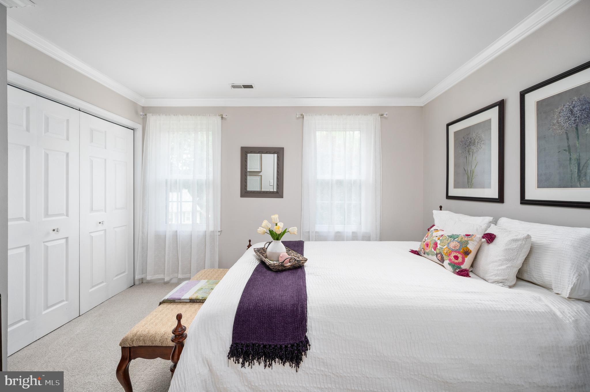 Detailed chair molding and shadow boxing trim throughout the main level and in the spacious primary suite add warmth and architectural charm to the home's interior.