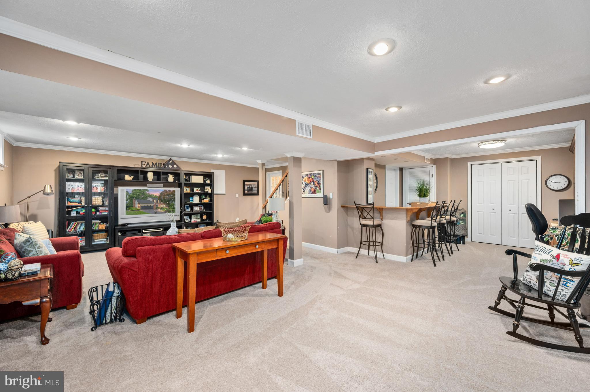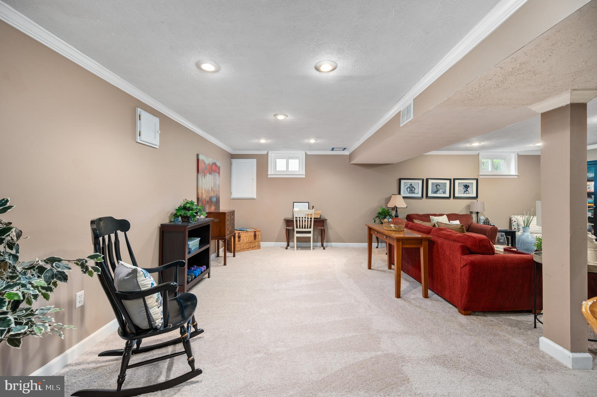 The reconfigured basement now includes a large recreation area perfect for a media space, home office or gym, and abundant storage. This flexible lower level is ideal for work or play.