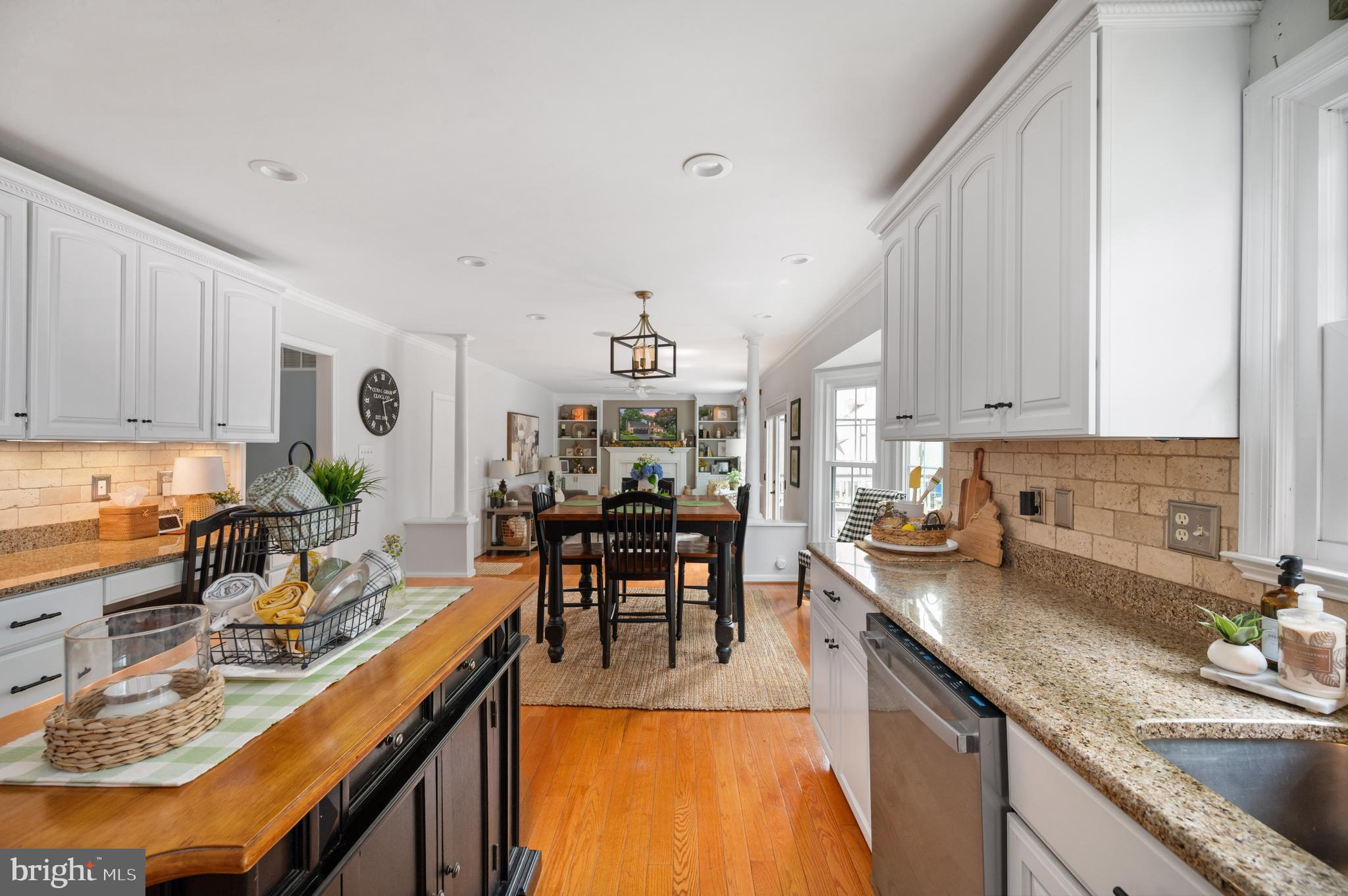 The main level features a combination of hardwood flooring and carpet, formal living and dining rooms, and a spacious family room with a gas log fireplace and new flue insert (2023). The updated kitchen is complete with granite countertops, stainless steel appliances, a mobile center island, and a bright breakfast nook that opens to the rear deck--perfect for entertaining or relaxing.